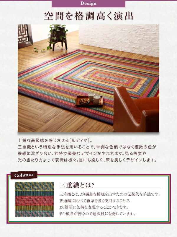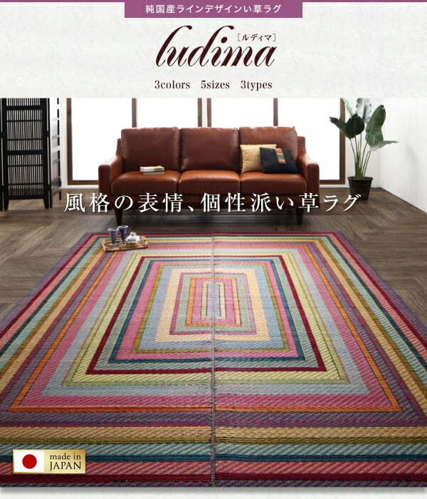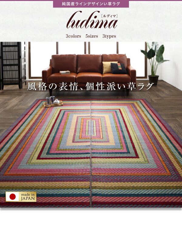 純国産ラインデザインい草ラグ 裏地なし 191×191cm
