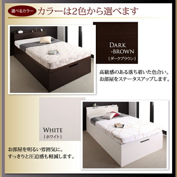 お客様組立 長く使える国産頑丈大容量跳ね上げ収納ベッド 薄型抗菌国産ポケットコイルマットレス付き 縦開き シングル 深さレギュラー