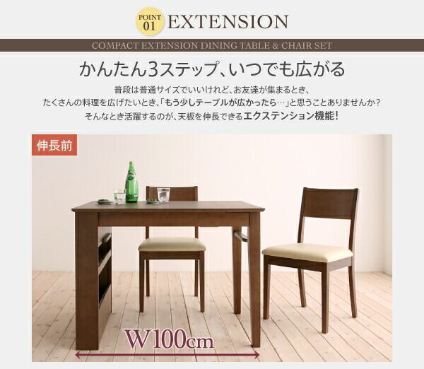 100cmから伸びる コンパクトエクステンションダイニング 5点セット(テーブル+チェア4脚) W100-135