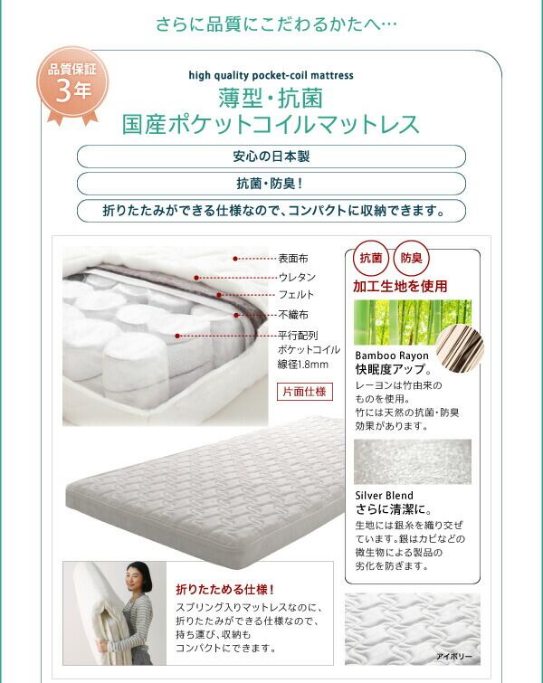 薄型抗菌国産ポケットコイルマットレス付き 下段ベッド シングル ショート丈