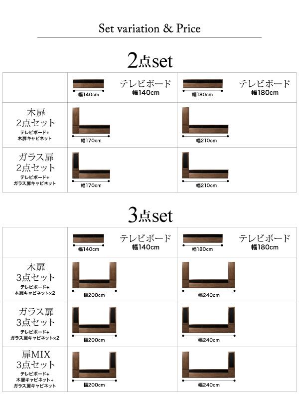 キャビネットが選べるテレビボードシリーズ 3点セット(テレビボード+キャビネット×2) 木扉 幅180