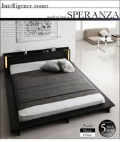 モダンライト・棚・コンセント付きデザインフロアローベッド スタンダードポケットコイルマットレス付き クイーン(Q×1)