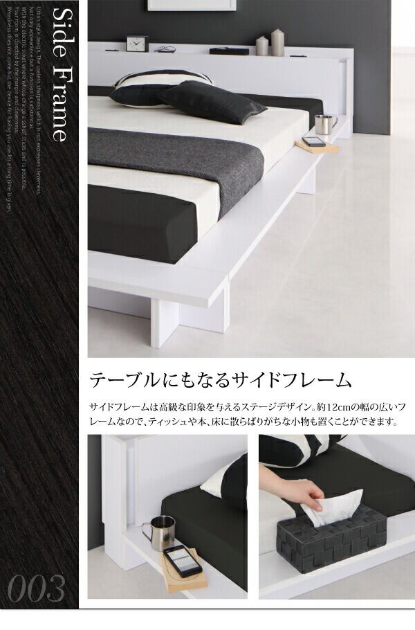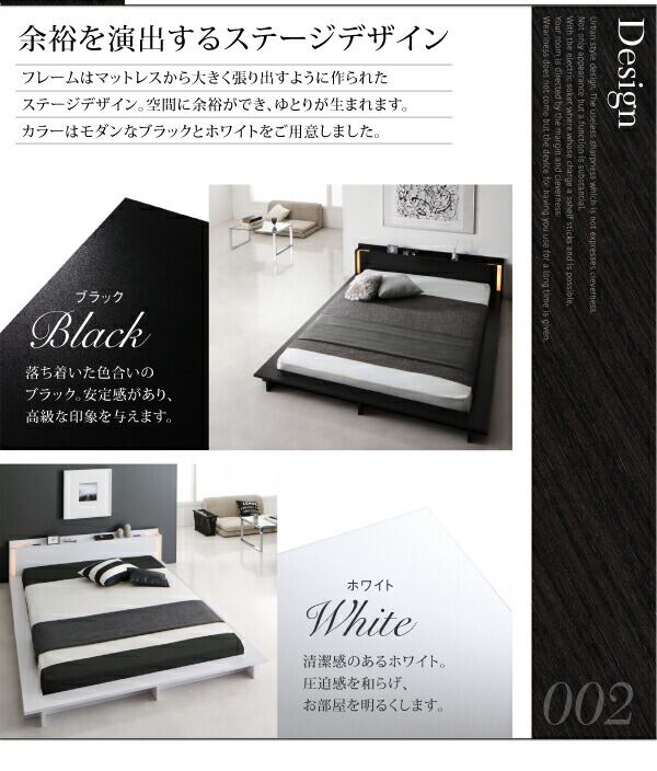 モダンライト・棚・コンセント付きデザインフロアローベッド プレミアムボンネルコイルマットレス付き クイーン(Q×1)