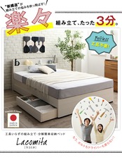 工具いらずの組み立て・分解簡単収納ベッド 国産ボンネルコイルマットレス付き セミダブル