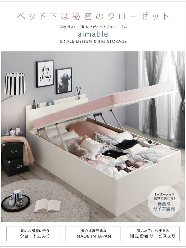 薄型抗菌国産ポケットコイルマットレス付き 縦開き シングル レギュラー丈 深さグランド