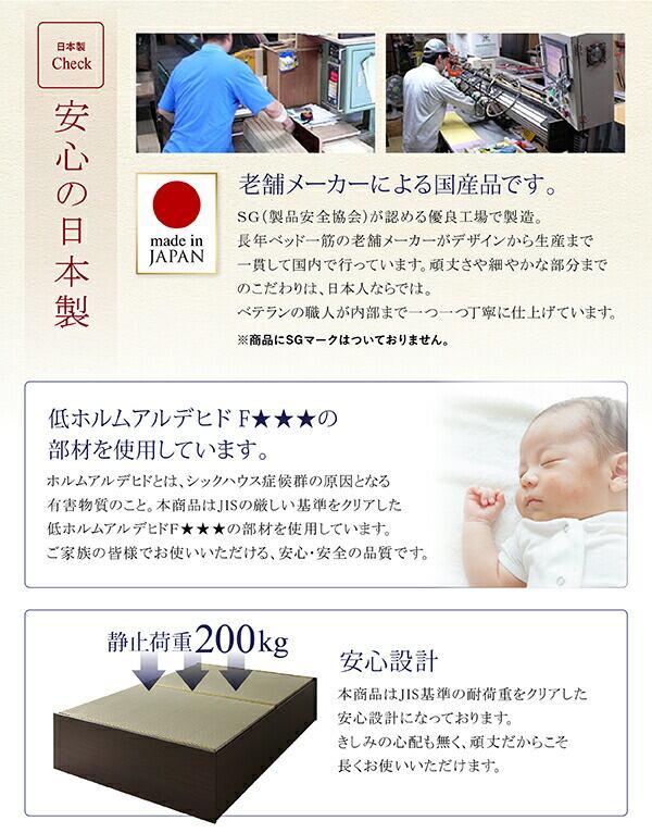 お客様組立 日本製・布団が収納できる大容量収納畳ベッド クッション畳 ダブル 42cm