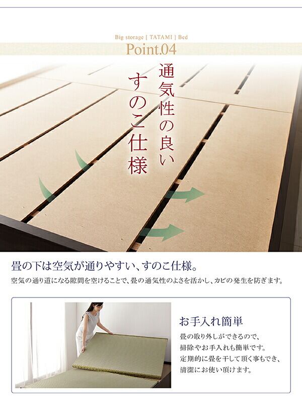 お客様組立 日本製・布団が収納できる大容量収納畳ベッド 洗える畳 セミダブル 42cm