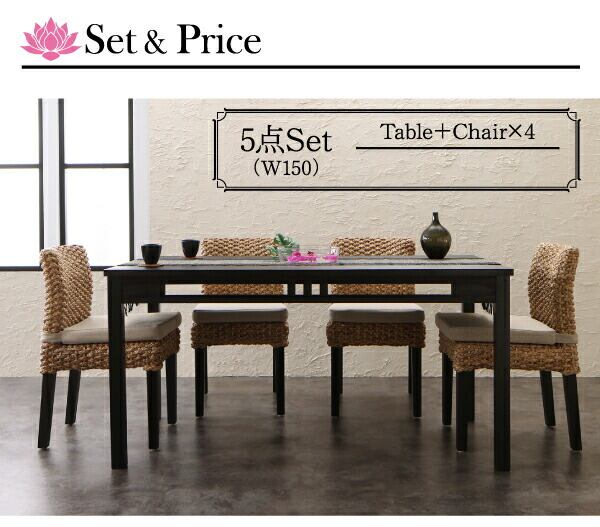 アジアンモダンダイニングセット 5点セット(テーブル+チェア4脚) W120