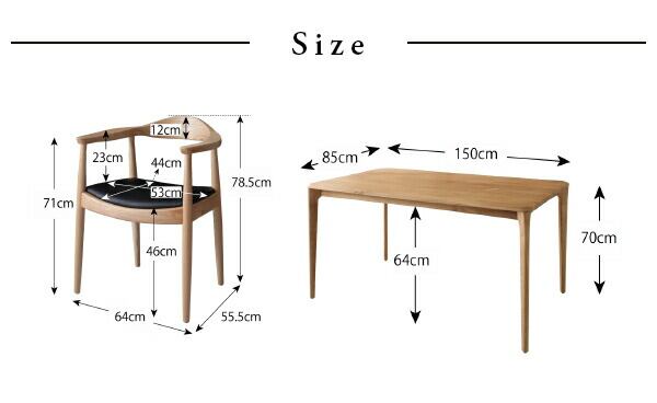 天然木オーク無垢材 北欧デザイナーズ ダイニングセット 5点セット(テーブル+チェア4脚) W150
