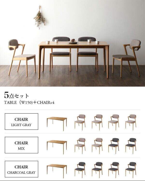 天然木オーク無垢材 北欧ダイニングセット 5点セット(テーブル+チェア4脚) W150