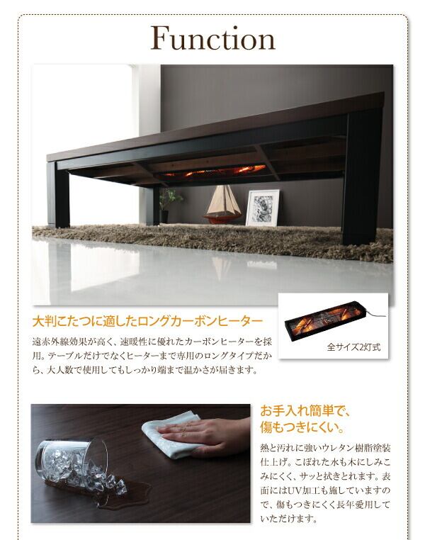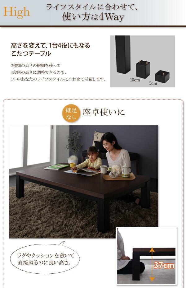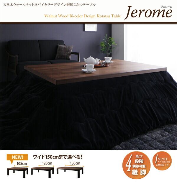 天然木ウォールナット材バイカラーデザイン継脚こたつテーブル 4尺長方形(80×120cm)