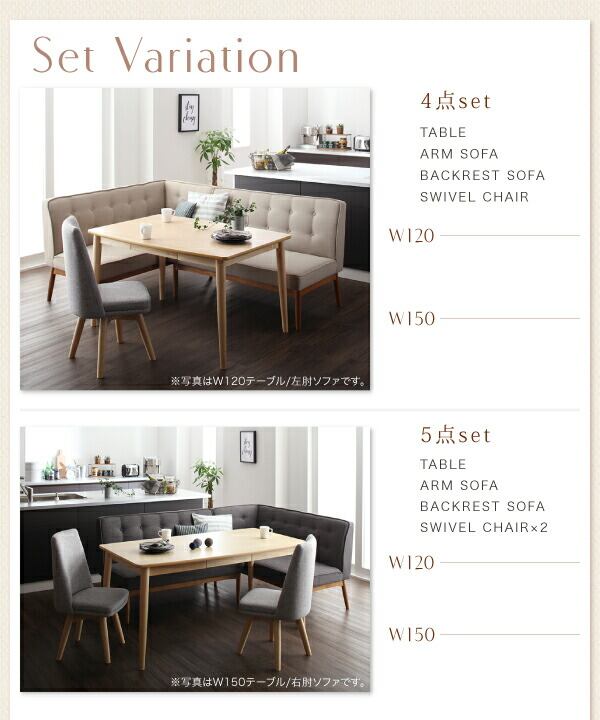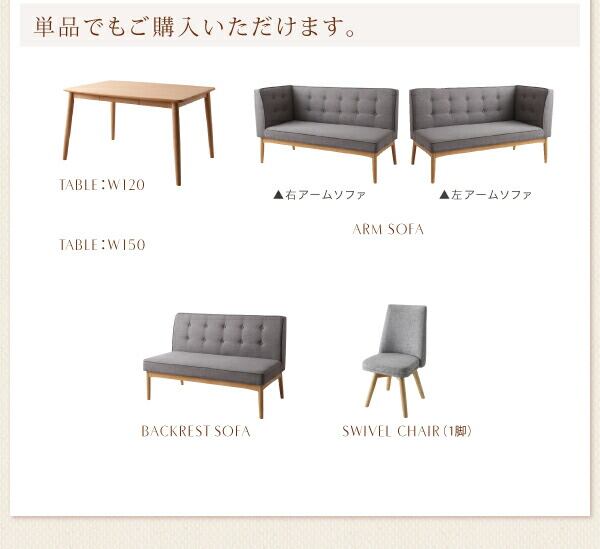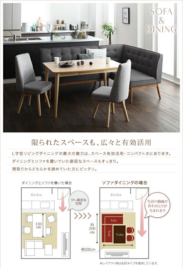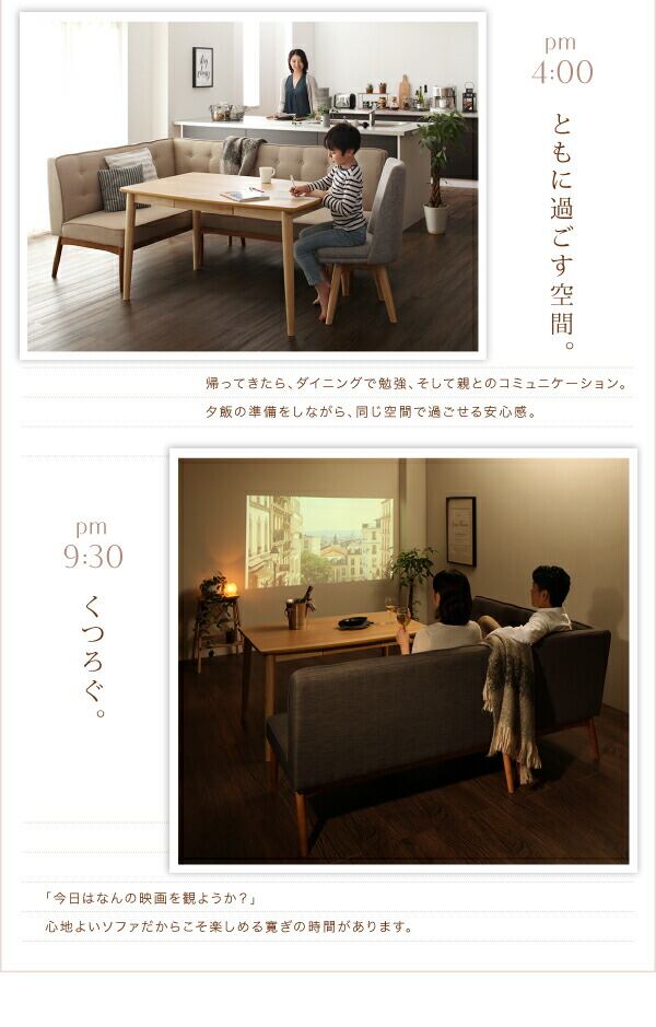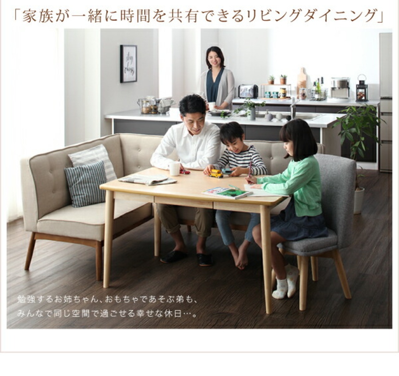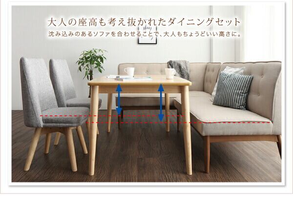 子供の高さに合わせた リビング学習ダイニングセット ダイニングソファ 左アーム 2P