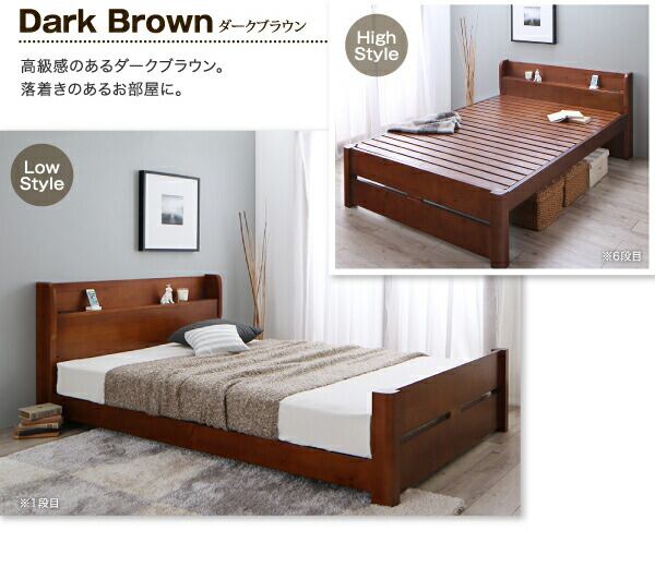 ローからハイまで高さが変えられる6段階高さ調節 頑丈天然木すのこベッド ベッドフレームのみ ダブル