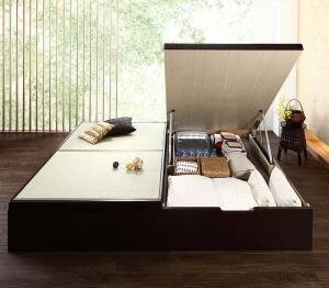お客様組立の和空間をつくる日本製大容量収納ガス圧式跳ね上げ畳ベッド 国産畳 シングル 深さラージ
