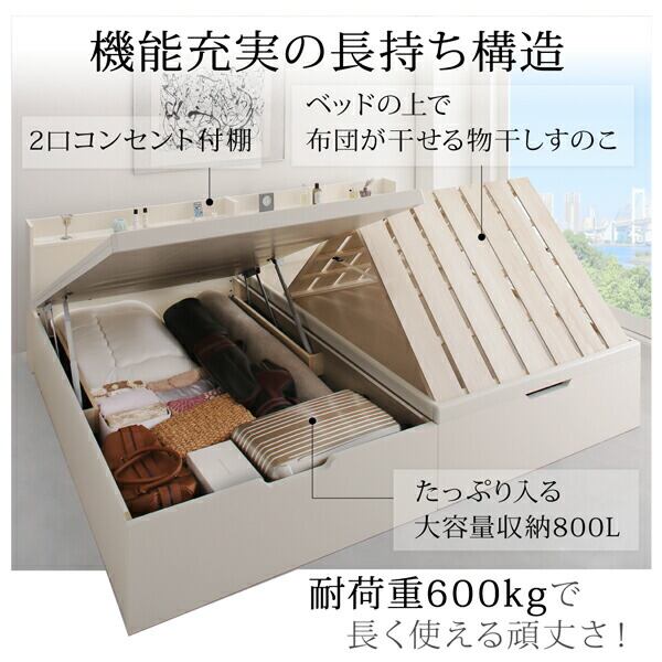 お客様組立 1台で3役使える 国産頑丈すのこ跳ね上げ式大容量収納ベッド Long force ロングフォルス セミシングル 深さレギュラー