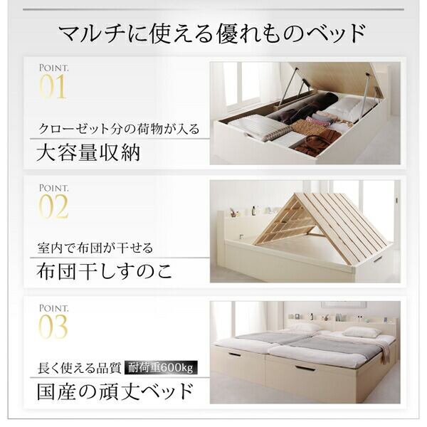 お客様組立 1台で3役使える 国産頑丈すのこ跳ね上げ式大容量収納ベッド Long force ロングフォルス セミシングル 深さラージ