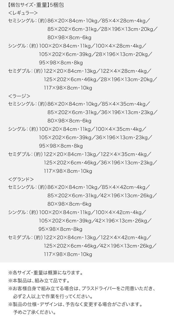 お客様組立 1台で3役使える 国産頑丈すのこ跳ね上げ式大容量収納ベッド Long force ロングフォルス セミシングル 深さグランド