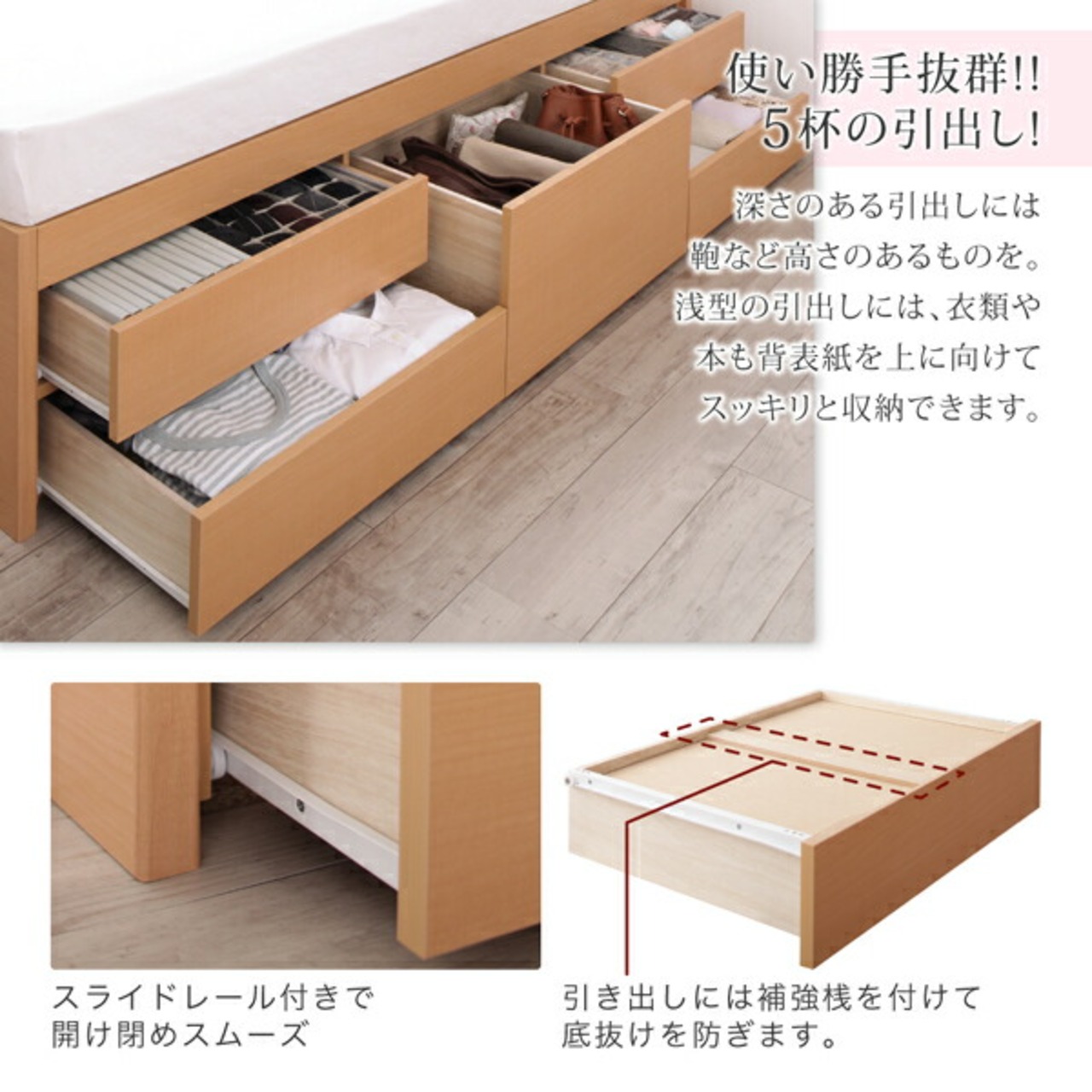 お客様組立 国産 清潔すのこ ヘッドレスチェストベッド 薄型抗菌国産ポケットコイルマットレス付き シングル
