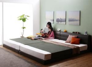 親子で寝られる棚・コンセント付きレザー連結ベッド ラテックス入り国産ポケットコイルマットレス付き ワイドK280
