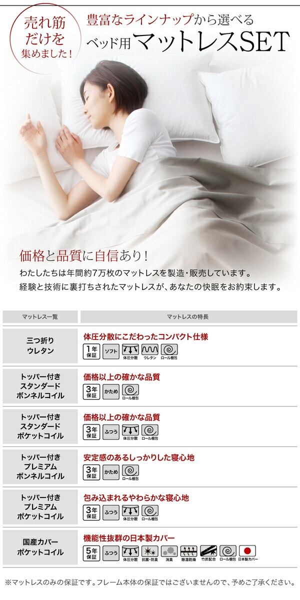 国産カバーポケットコイルマットレス付き セミダブル