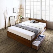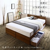 北欧ヴィンテージ 棚・コンセント付き収納ベッド 国産カバーポケットコイルマットレス付き セミダブル