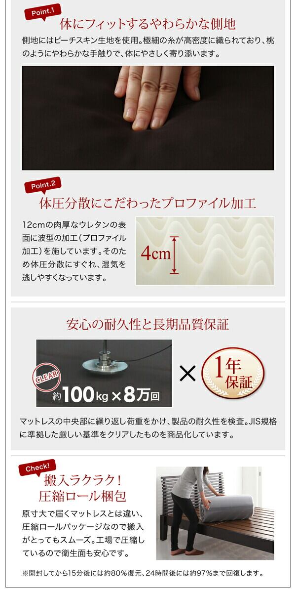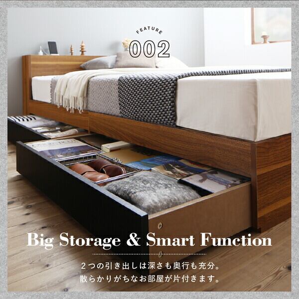 北欧ヴィンテージ 棚・コンセント付き収納ベッド 国産カバーポケットコイルマットレス付き ダブル
