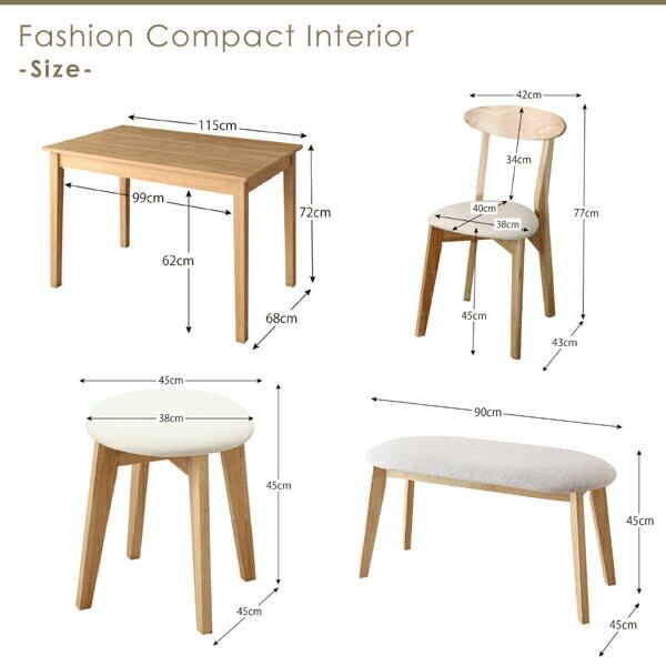 ダイニング 5点セット(テーブル+チェア2脚+スツール2脚) ナチュラル W115