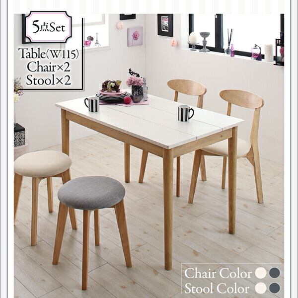 カワイイテイスト ダイニング 3点セット(テーブル+チェア2脚) W115