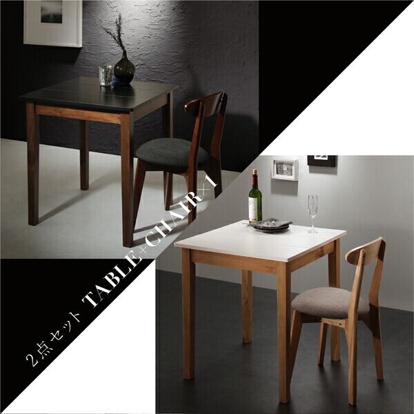 ダイニング3点セット(テーブル+チェア2脚) ブラック×ウォールナット W68
