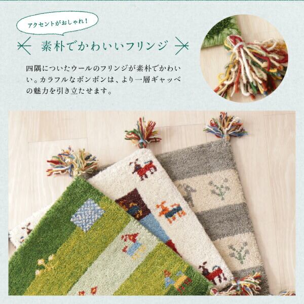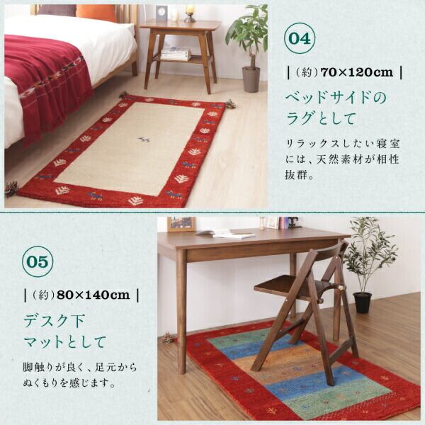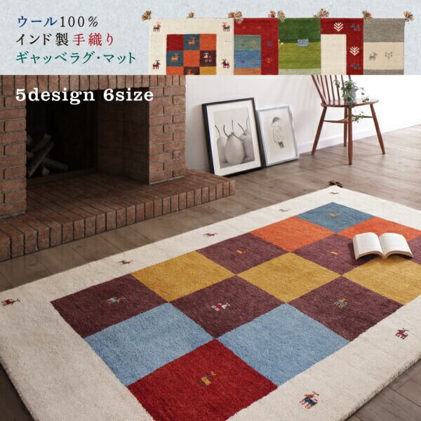 ウール100%インド製手織りギャッベラグ・マット 140×200cm