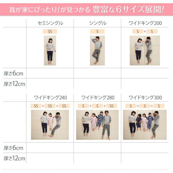 豊富な6サイズ展開 厚さが選べる 寝心地も満足なひろびろファミリーマットレス ワイドK200 厚さ12cm