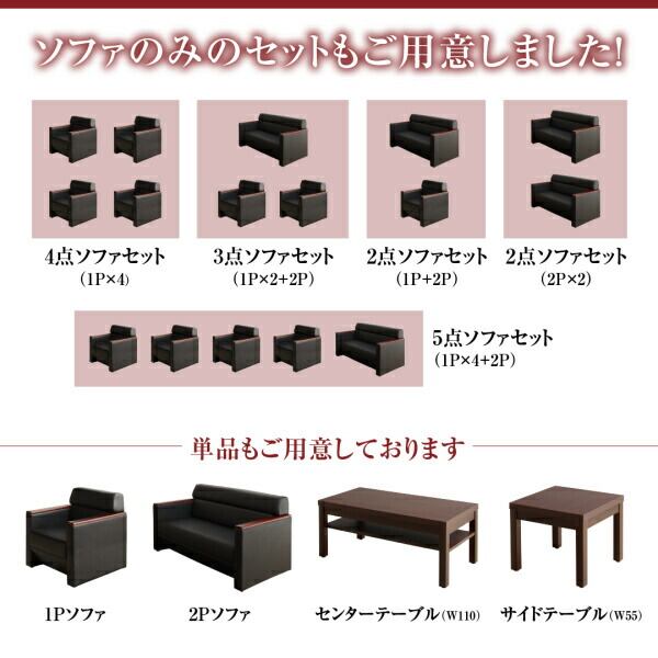 条件や目的に応じて選べる高級木肘デザイン応接ソファセット ソファ5点セット 1P×4+2P