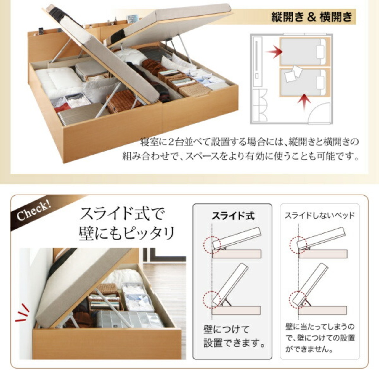 お客様組立 国産跳ね上げ収納ベッド ナチュラル 薄型スタンダードボンネルコイルマットレス付き 横開き セミシングル 深さレギュラー