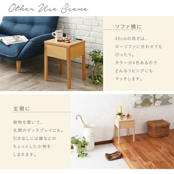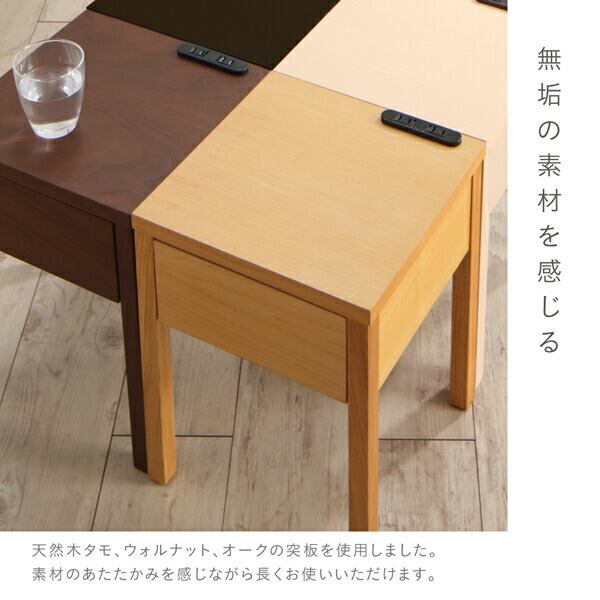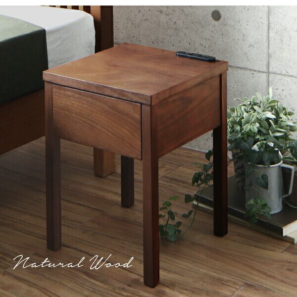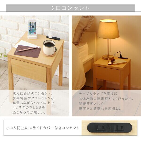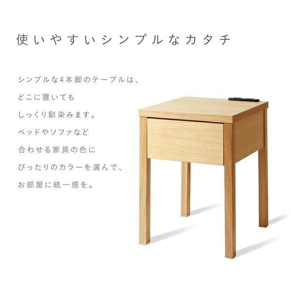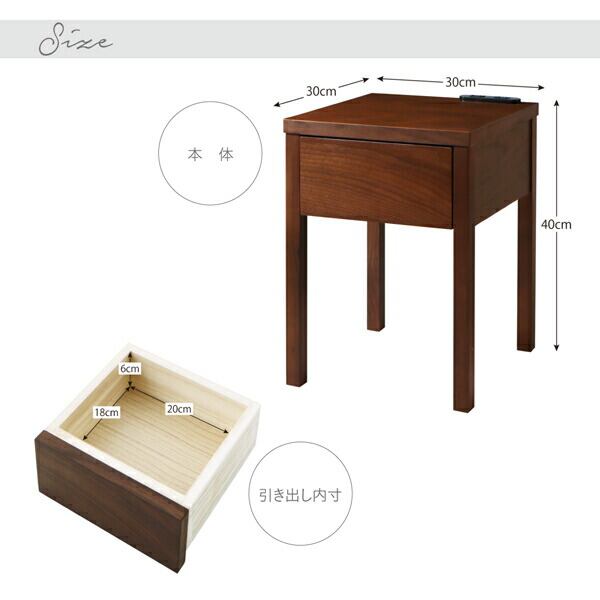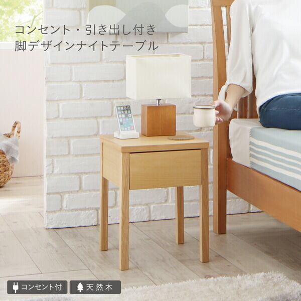 コンセント・引き出し付き脚デザインナイトテーブル W30