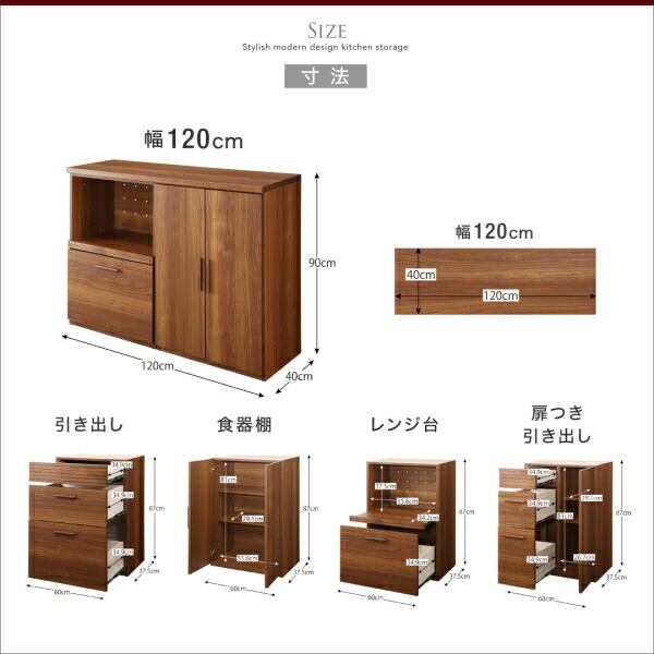 キッチン収納 日本製完成品 天然木調ワイドキッチンカウンター レンジ台+引き出し 120cm