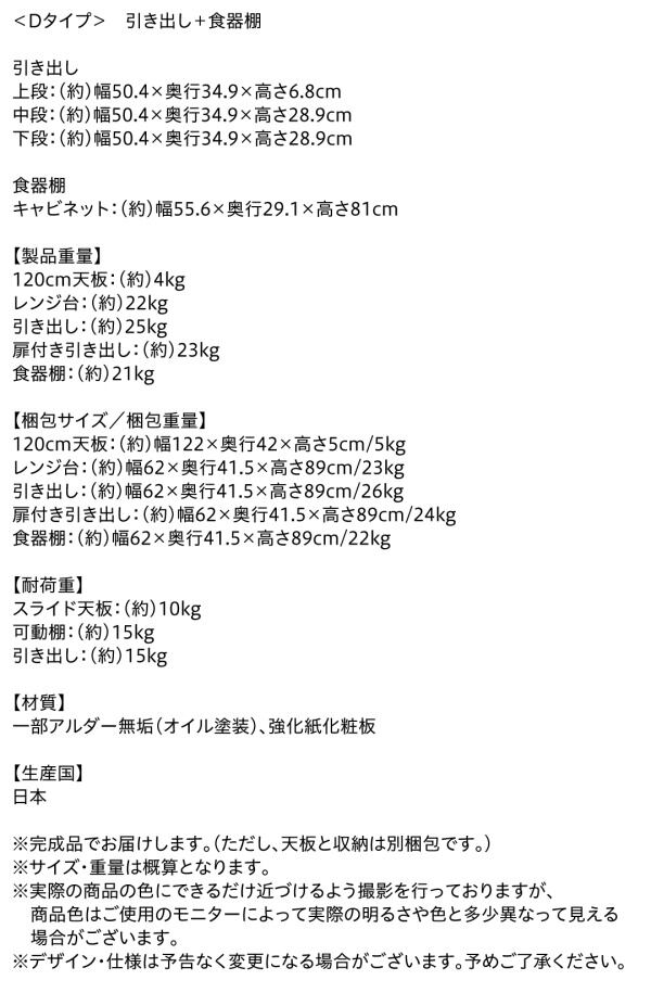 キッチン収納 日本製完成品 天然木調ワイドキッチンカウンター 引き出し+食器棚 120cm