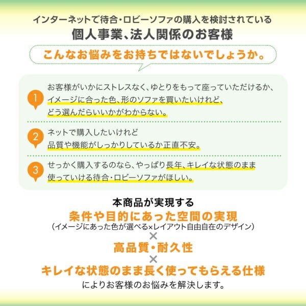 空間に合わせて色と形を選ぶカバーリング待合ロビーソファ ソファ4点セット 半円×2+背あり+背なし 2P×4