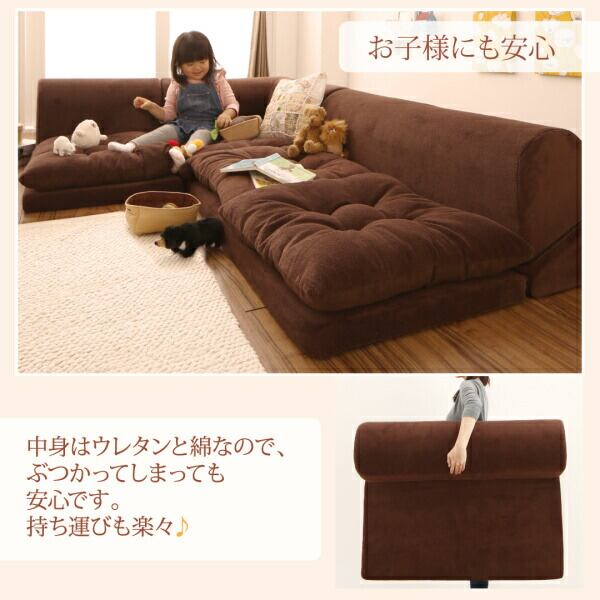 ふわふわなめらかマイクロファイバーフロアコーナーソファ ソファ6点セット コの字 1P+2P×3+コーナー×2