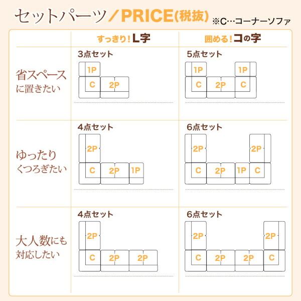 ソファ6点セット コの字 1P+2P×3+コーナー×2