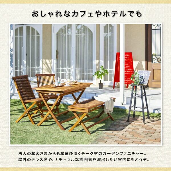 チーク天然木 折りたたみ式ベンチタイプガーデンファニチャー テーブル W120