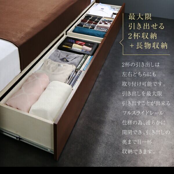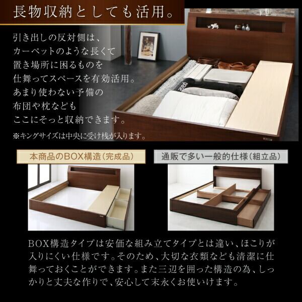 高級ウォルナット材ワイドサイズ収納ベッド ベッドフレームのみ ライトタイプ ダブル