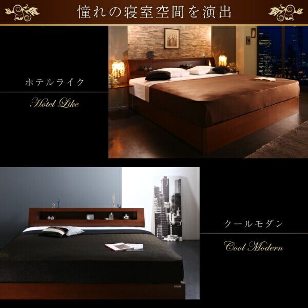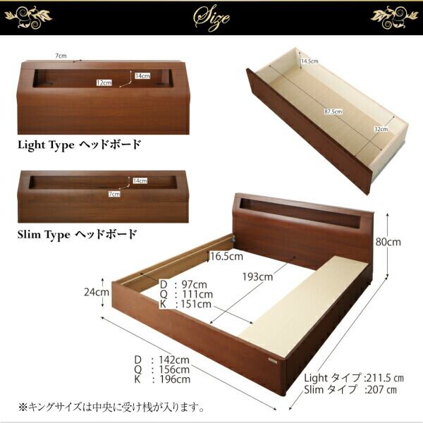 高級ウォルナット材ワイドサイズ収納ベッド ボンネルコイルマットレス付き ライトタイプ クイーン