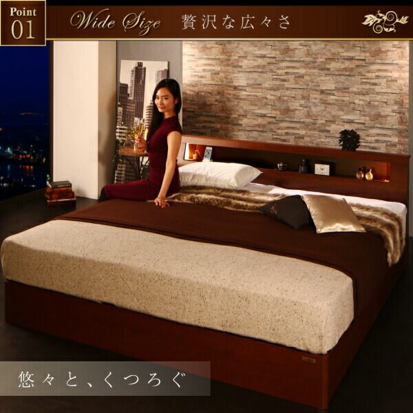 高級ウォルナット材ワイドサイズ収納ベッド ボンネルコイルマットレス付き ライトタイプ キング