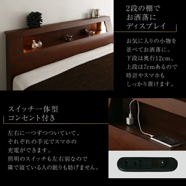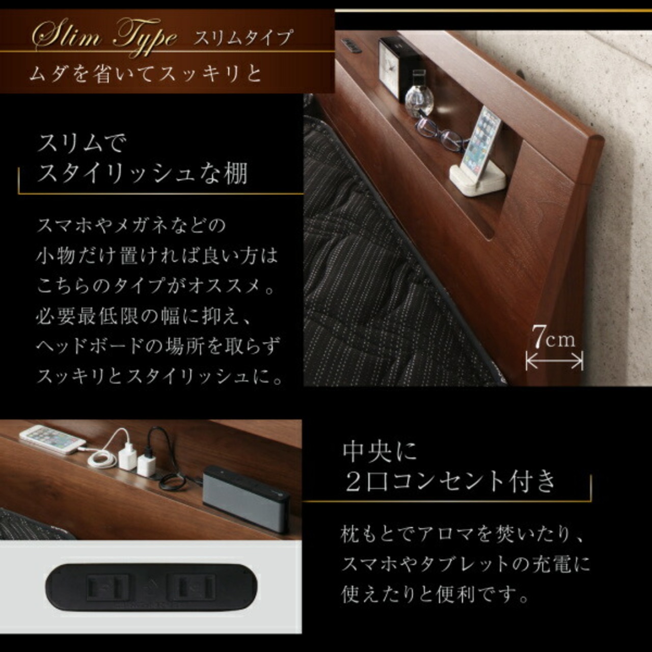 高級ウォルナット材ワイドサイズ収納ベッド ベッドフレームのみ スリムタイプ キング
