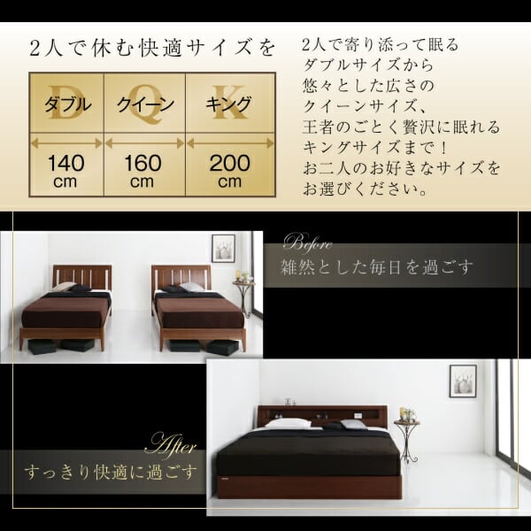 高級ウォルナット材ワイドサイズ収納ベッド プレミアム国産ハードポケットコイルマットレス付き ライトタイプ ダブル レギュラー丈