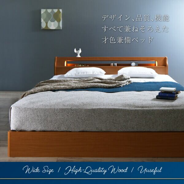 高級アルダー材ワイドサイズデザイン収納ベッド プレミアム国産ハードポケットコイルマットレス付き スリムタイプ キング
