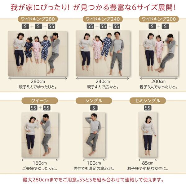 豊富な6サイズ展開 3つの厚さが選べる 洗える敷パッド付き ファミリーマットレス敷布団 セミシングル 厚さ6cm