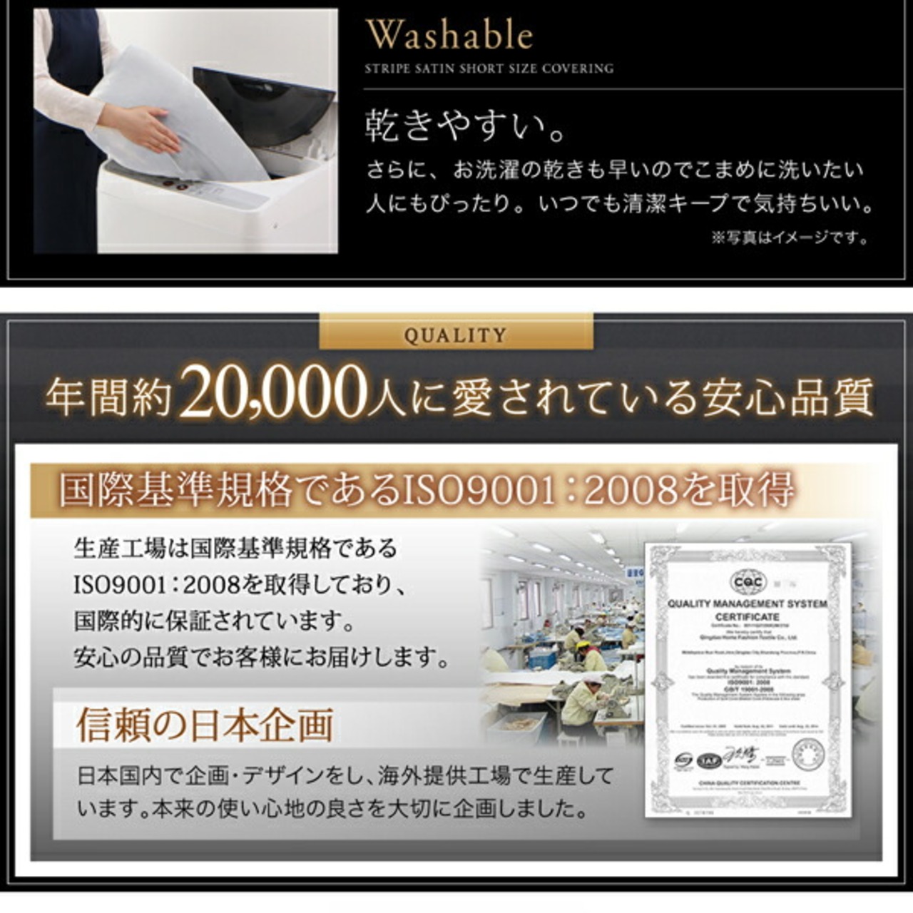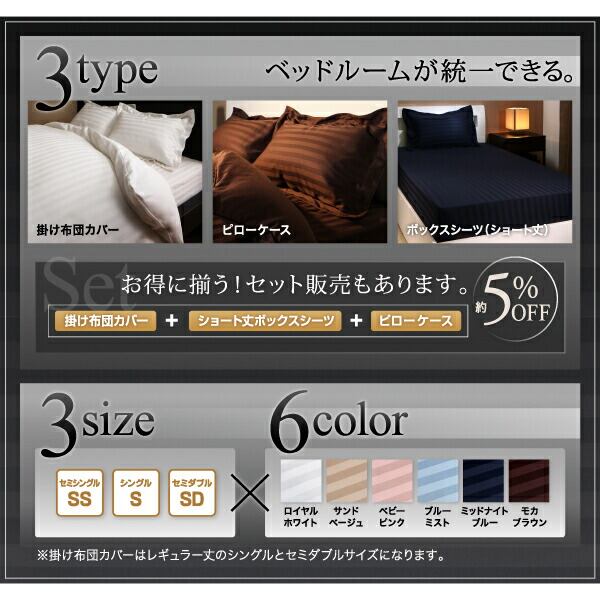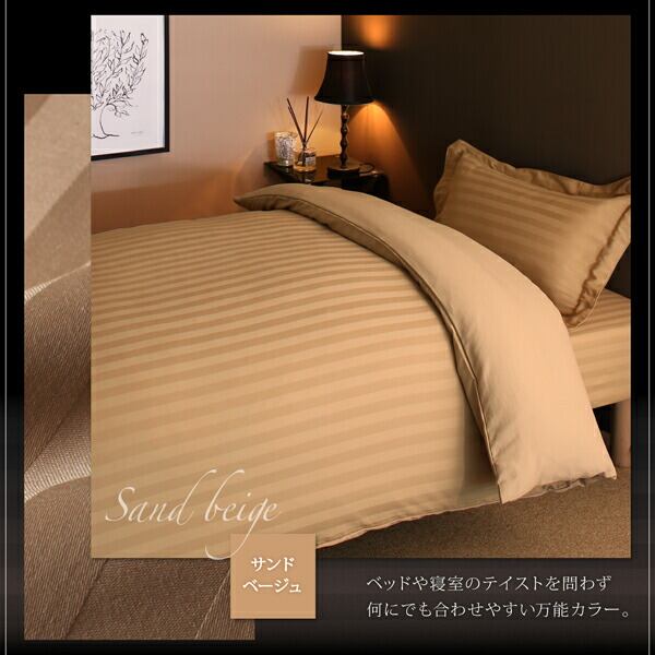 ショート丈ベッド用 6色から選べる 綿混サテン ホテルスタイルストライプカバーリング 布団カバーセット ベッド用 セミシングル3点セット ショート丈