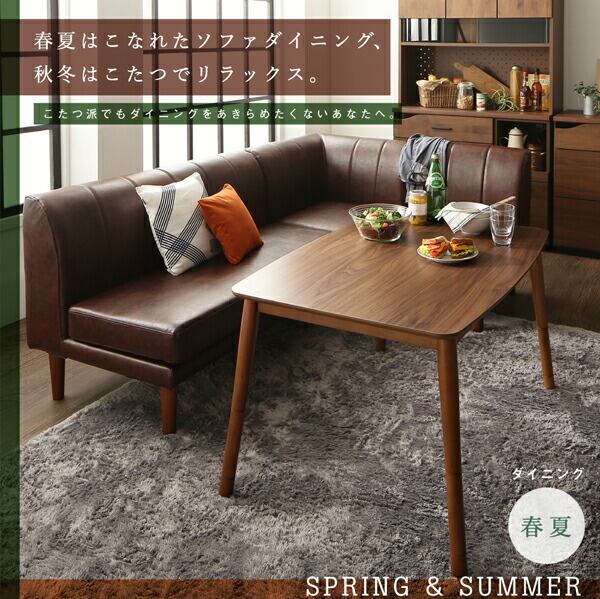 年中快適 こたつもソファも高さ調節 リビングダイニングセット 4点セット(テーブル+2Pソファ1脚+1Pソファ1脚+コーナーソファ1脚) W120