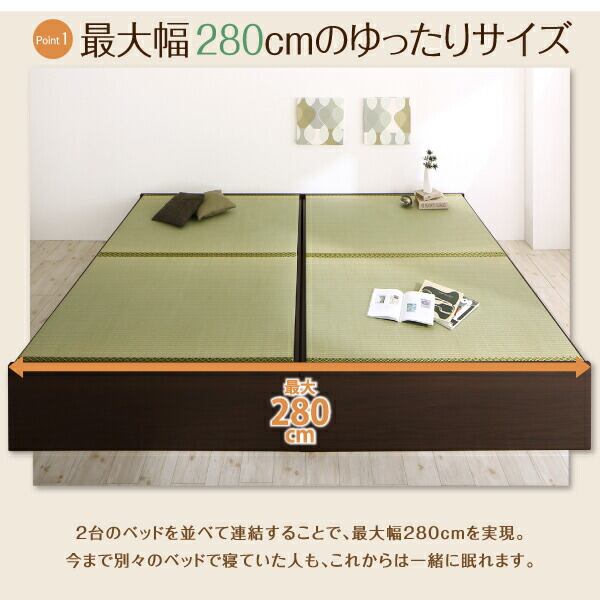 お客様組立 日本製・布団が収納できる大容量収納畳連結ベッド ベッドフレームのみ い草畳 セミダブル 42cm